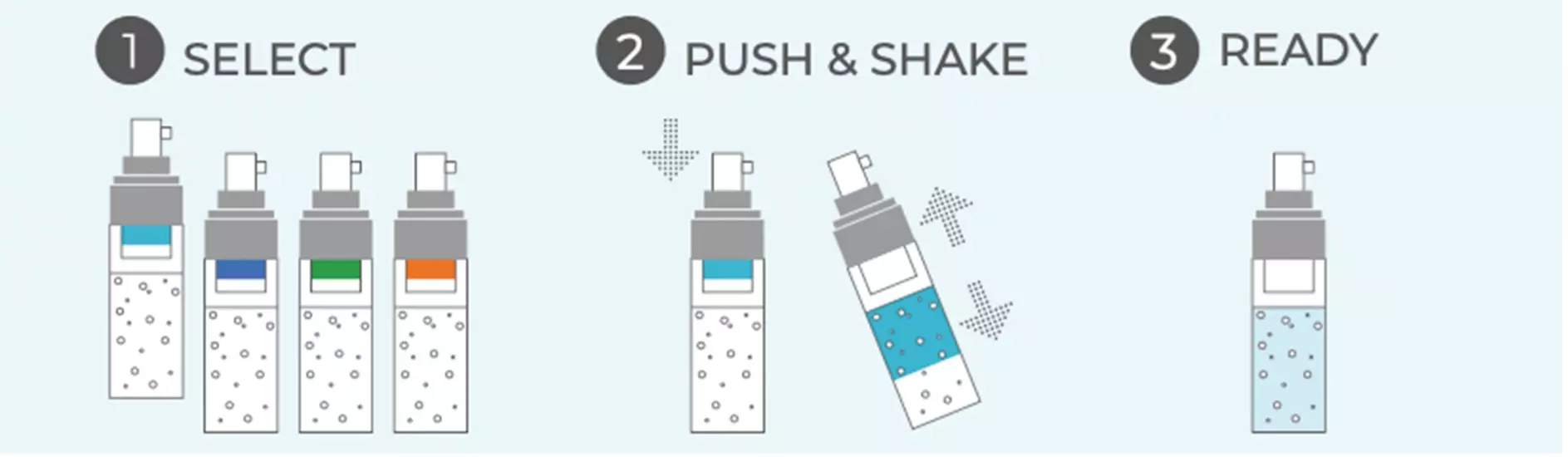 At the heart of this range is a revolutionary fresh-activation system that sets it apart from conventional serums and boosters. Each bottle contains a powerful active ingredient housed separately from the ultra-hydrating Hydra-Gel base. When your client makes their first pump, the active ingredient is released into the gel, creating a freshly activated treatment specifically tailored to their skin concern.