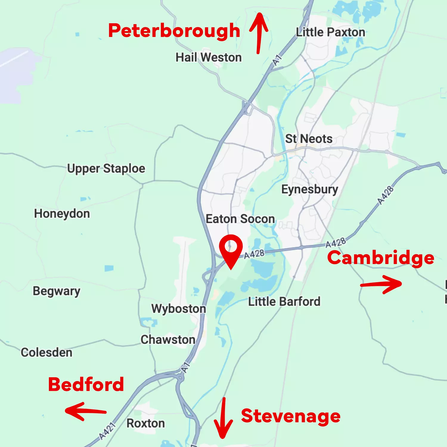 • Train - St Neots Station is easily accessible via the regular Thameslink service between Horsham and Peterborough. Journey time from London King’s Cross or St Pancras International is less than 1 hour.